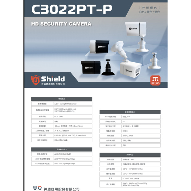 • 神盾 C3022PT-P 1080P HD 監控攝影機