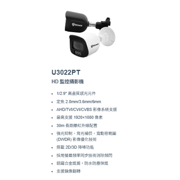 • 神盾 U3022PT 1080P HD 監控攝影機