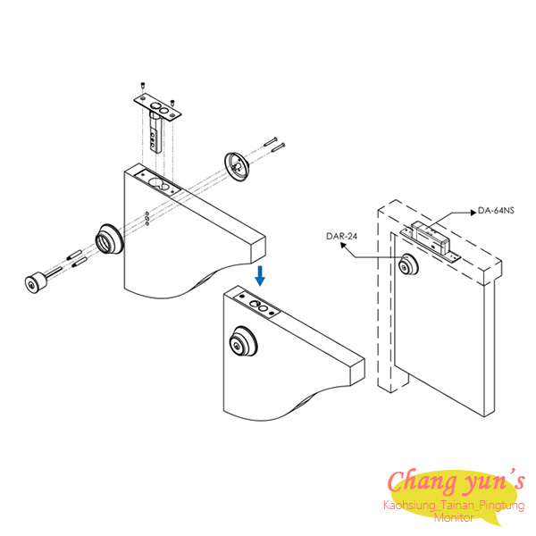 當使用斷電不開門之安全型陽極鎖於失去電力時為求緊急開門,則必須輔以此裝置,以便不時之需。